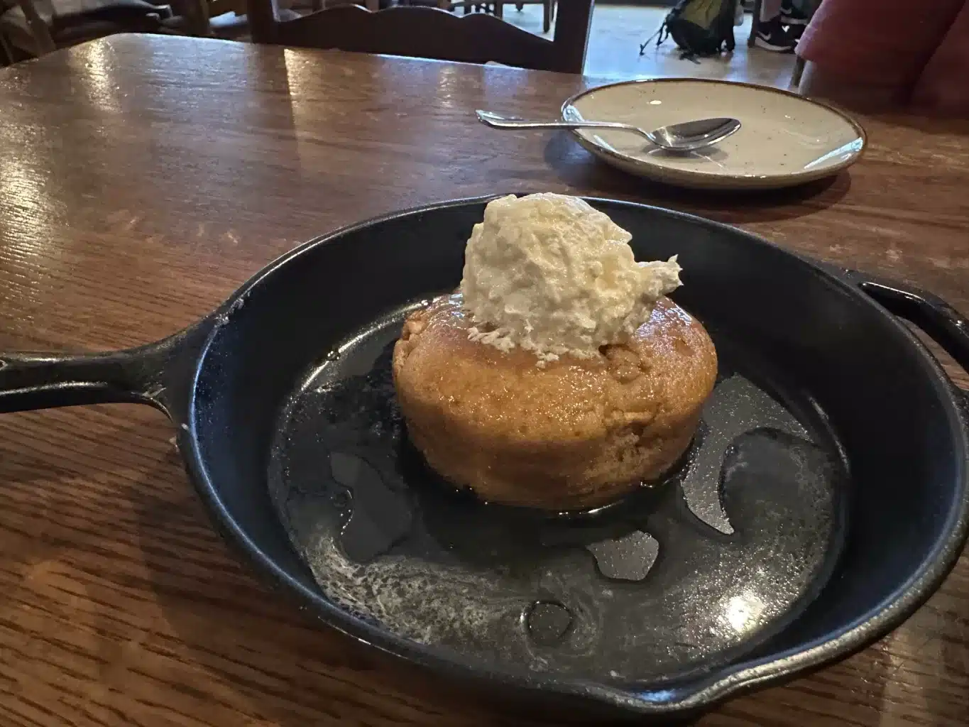 The single most important tip I can give you for Liberty Tree Tavern is Do. Not. Overeat. You must save room for the single best dessert on all of Walt Disney World property. I said it. The BEST ONE. The Oooey Gooey Toffee Cake. I’m not a cake eater. I will tell you; this isn’t a traditional cake. It is more like a crunchy on the outside, perfectly soft on the inside toffee flavored cookie.