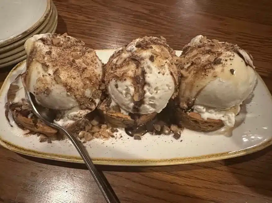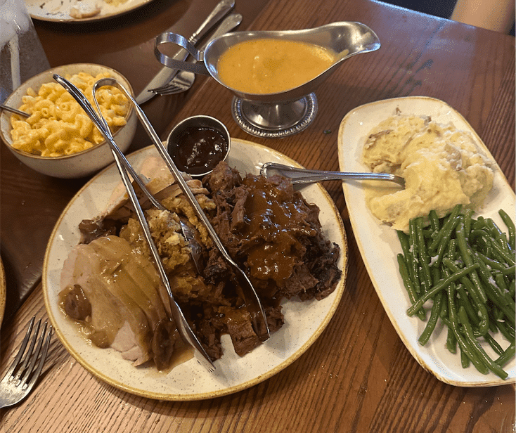They will likely also have one of the chefs come to your table to discuss your specific needs. The menu also has a plant-based Tavern Keeper’s Feast which offers Impossible Meatloaf and its own special dessert; the Johnny Appleseed’s Warm Apple Cake.